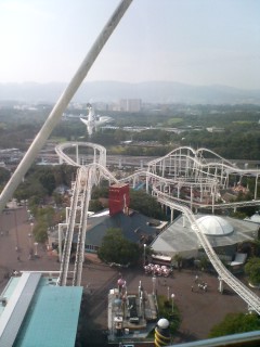 昨日ダーリンとエキスポランドに行ってきましたぁ♪ついたのは大体13時くらいかな(^^)そっからとりあえず全制覇目指して近場からいろ②と♪私ジェットコースターだめな子なんですが、、、エキスポは結構大丈夫だったw内臓浮き出る感じが少なかったからかな(~▽~)でも色々うちまくって痛かった↓↓。あと回転系乗りすぎて微妙に頭痛くなったりとか…(爆)